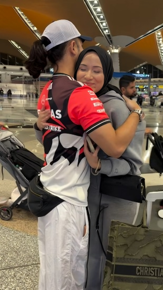 Hairul kelihatan agak sebak untuk melepaskan isterinya pergi. Mereka saling berpelukan dan Hairul juga dilihat mengesat air matanya sehingga mengundang sebak ramai orang. Maklumlah selama 10 hari isteri tiada dan Hairul akan menguruskan anak-anak.