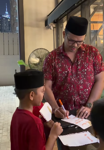 ” Lepas mengaji kat masjid adik-adik ni naik basikal datang.. ” – Khairul Aming