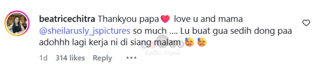 ” Lu buat gua sedih dong Pa. Adoh, lagi kerja ni.. ” – Beatrice