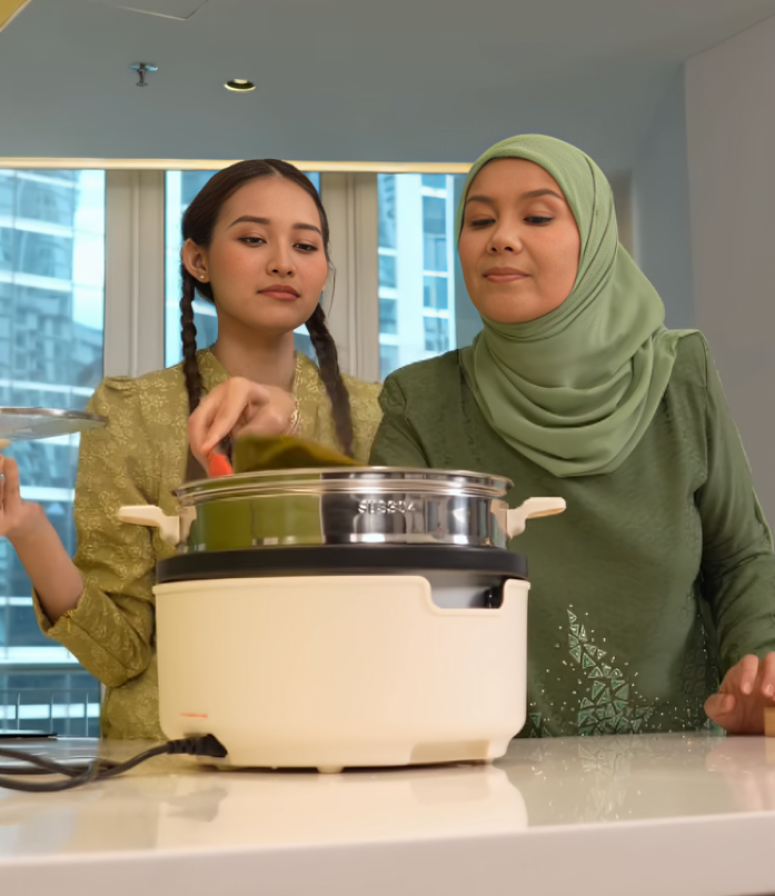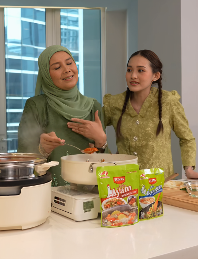 Sheila pula memberi reaksi yang cukup mencuit hati. Walaupun kelihatan seperti cuba menahan sabar, riak wajahnya jelas menggambarkan rasa sayang dan terhibur dengan perangai menantunya itu. Interaksi mereka tampak natural dan tidak dibuat-buat sehingga menyerlahkan hubungan yang mesra.