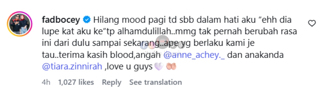 ” Wey, sebak baca ayat Achey untuk Fad. Semoga persahabatan korang hingga ke syurga.. ” – Komen Netizen